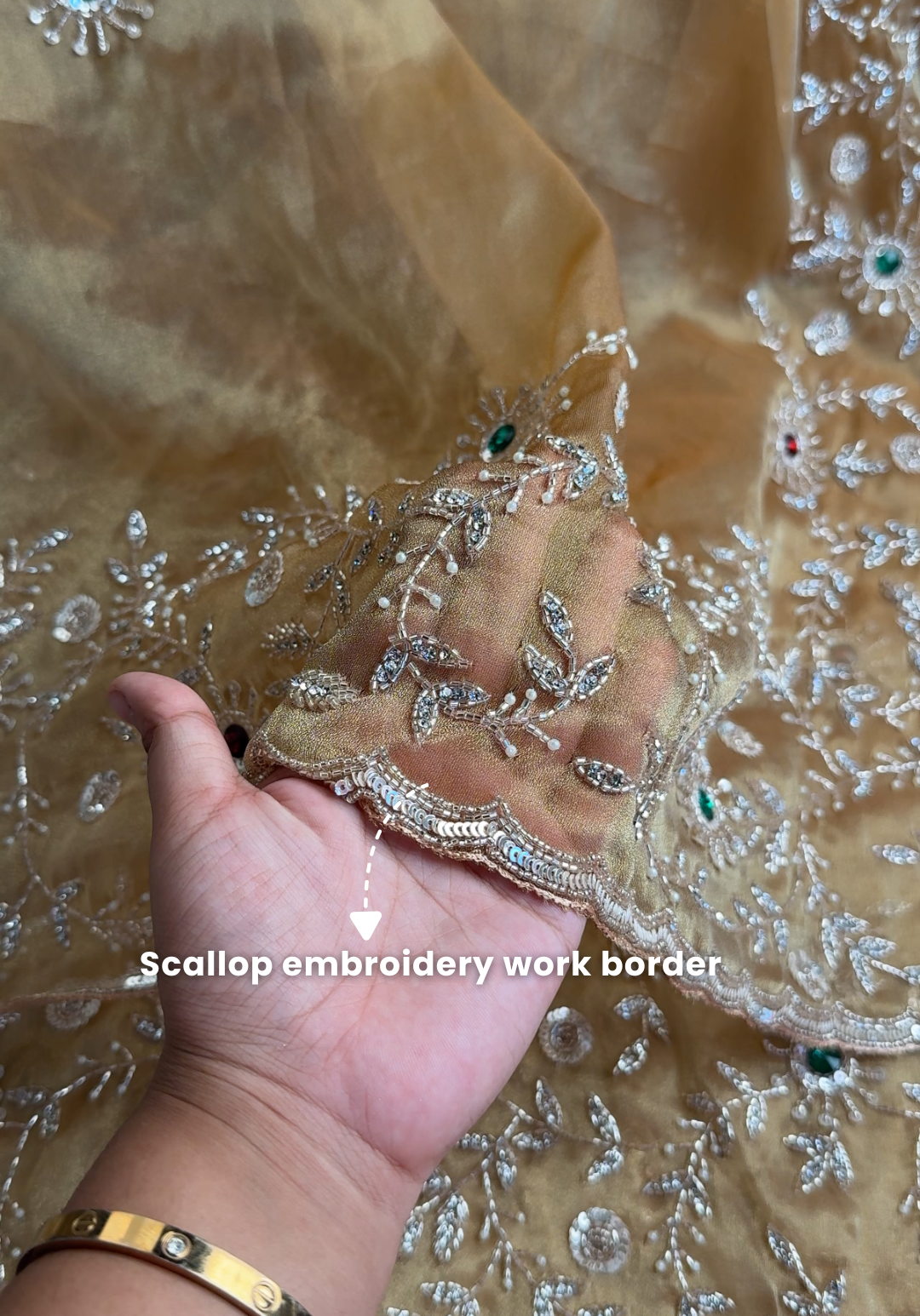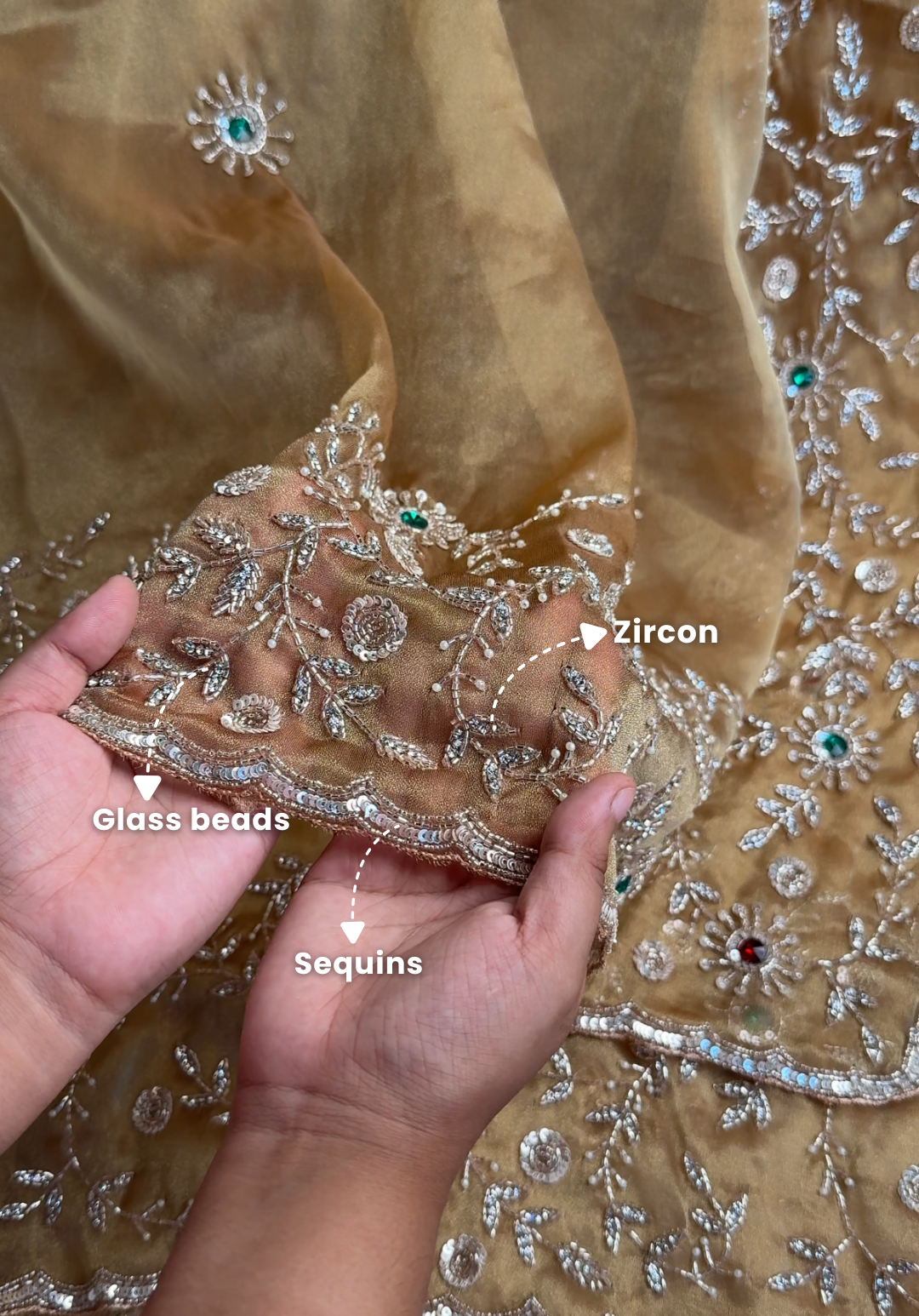 DUSKY - A warm golden tone designer saree with a slight mustard tint