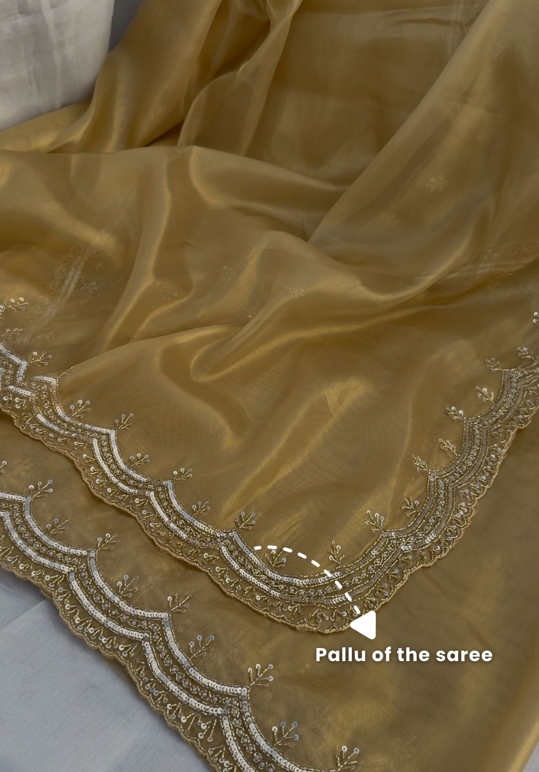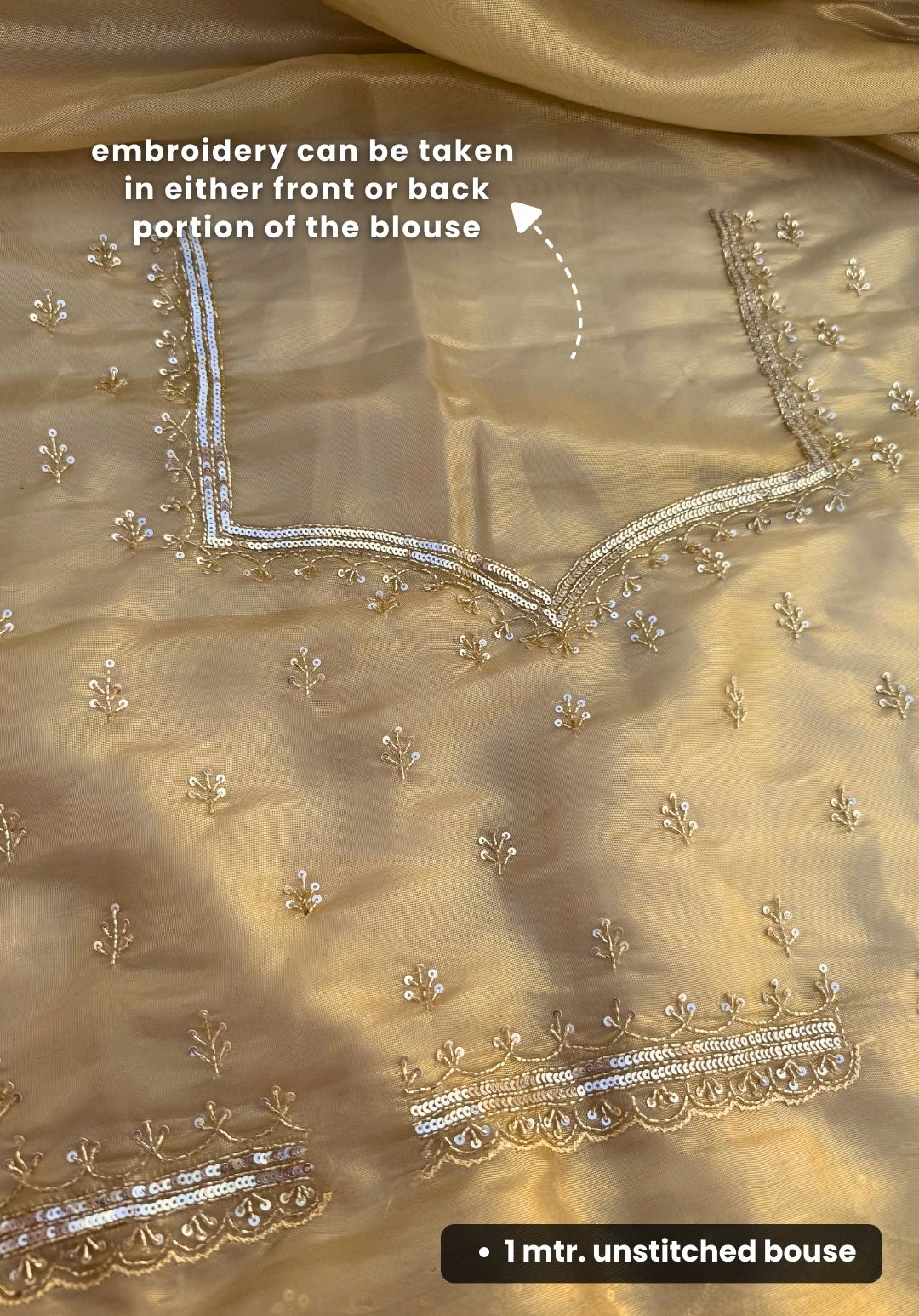 - Fabric - Shimmer tissue ( soft, light weight, body hugging fabric, saree pleats come out well )