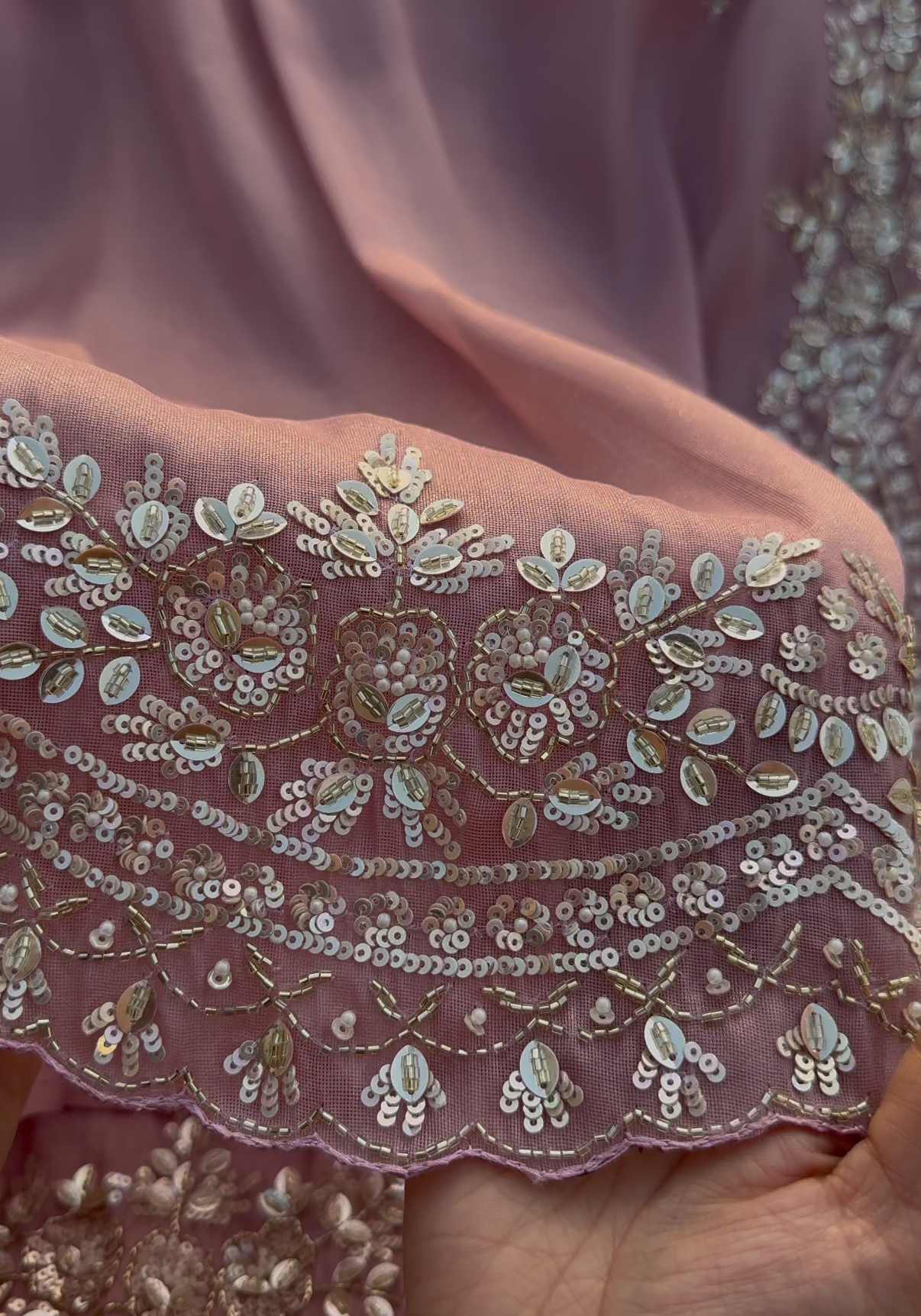 LOTUS - Blush pink shimmer tissue designer saree with sequin and pearl work