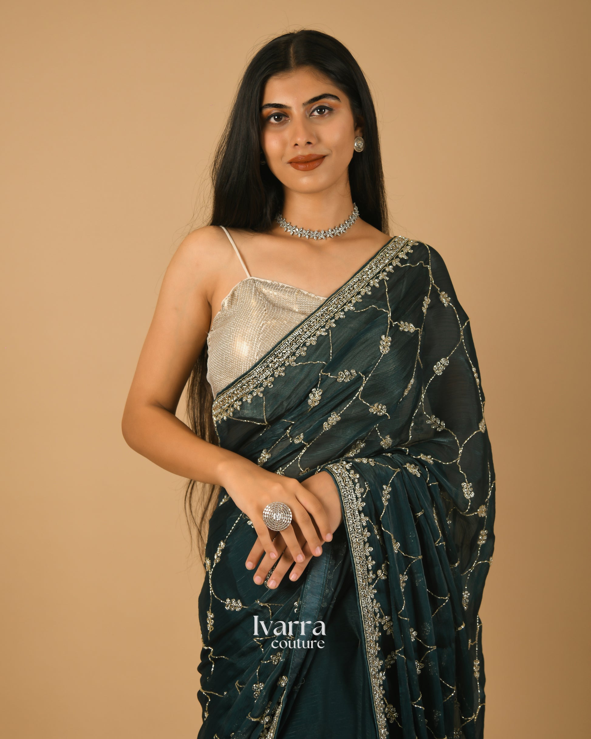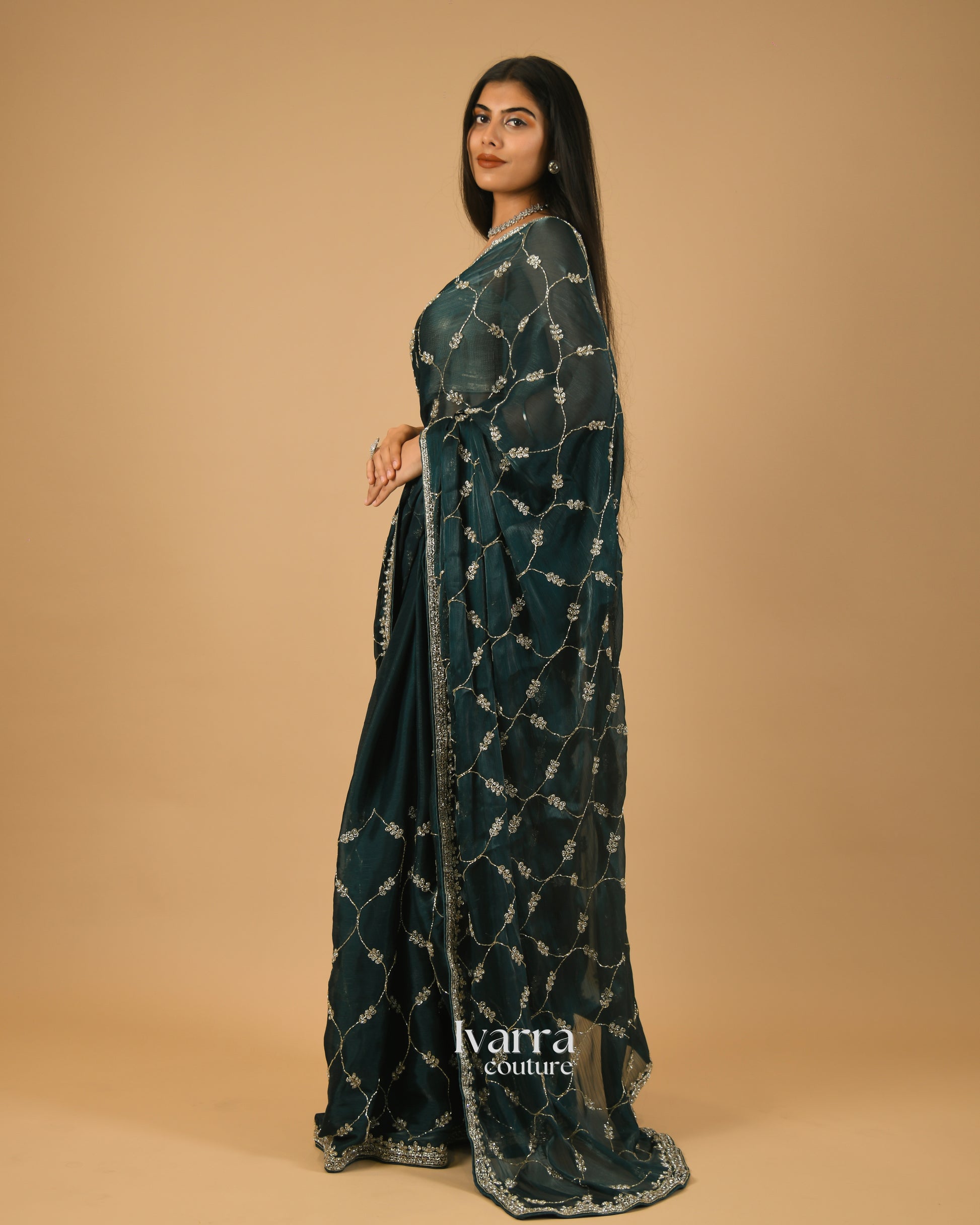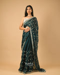NAYANTHARA - Bottle green embellished saree in textured organza