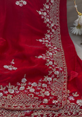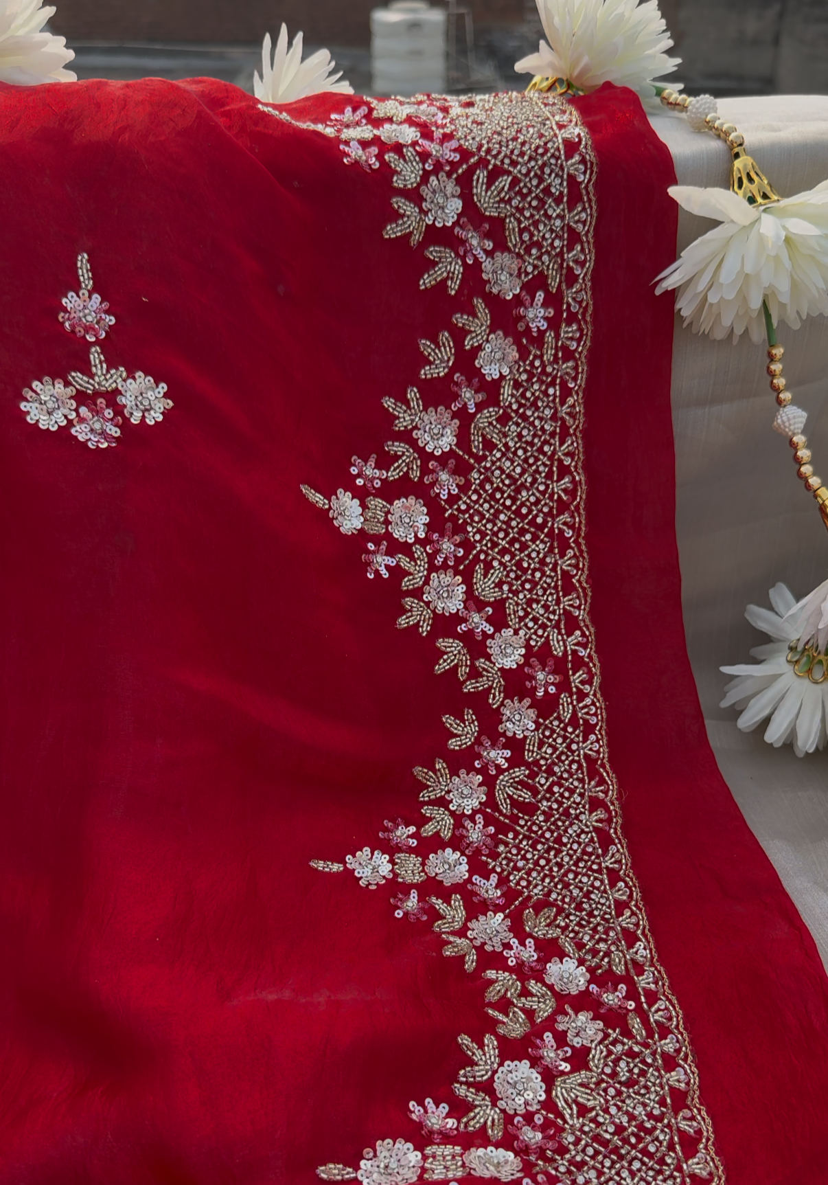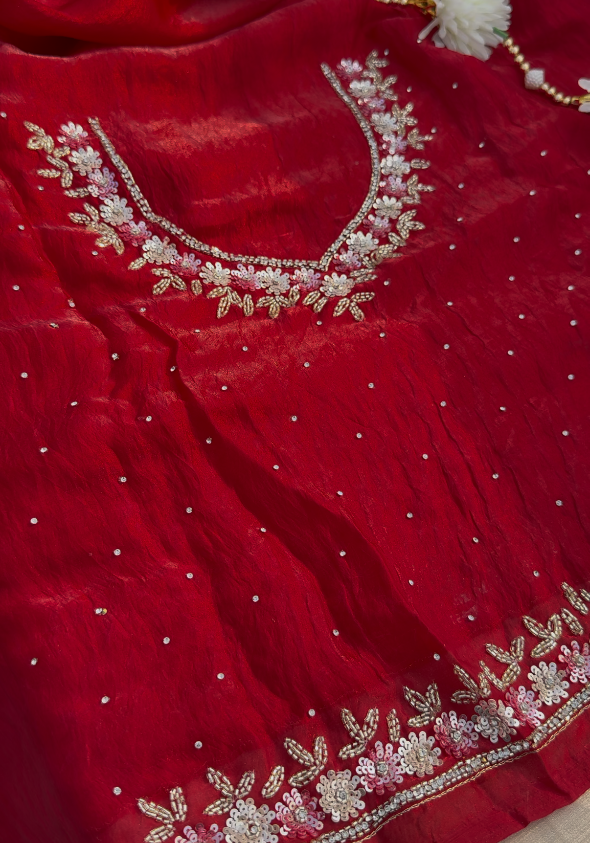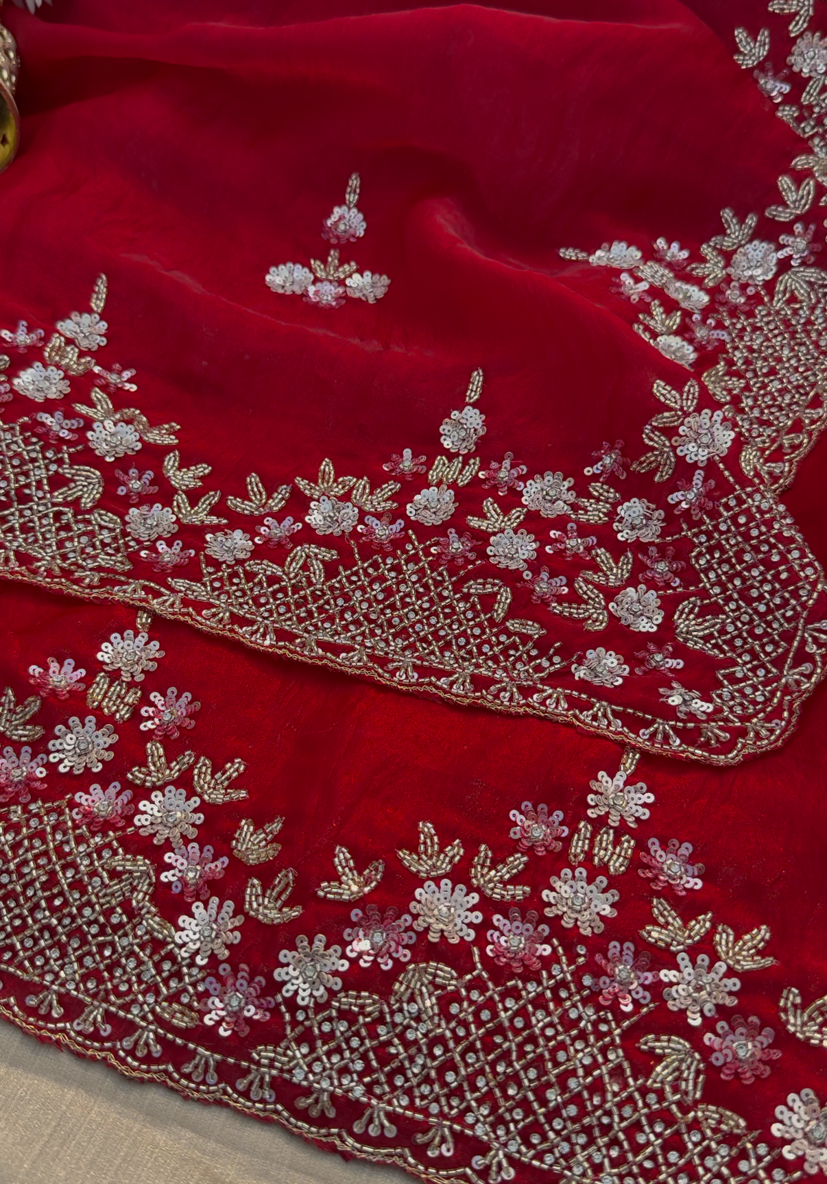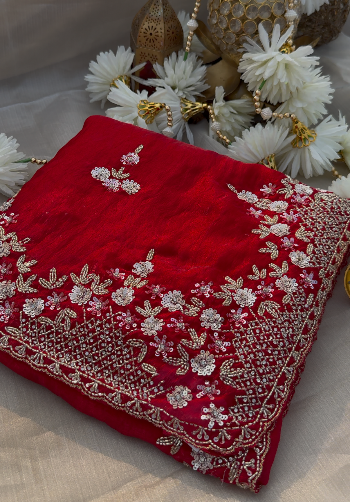NEWLYWED - Scarlet red tora silk saree with sequins embroidery