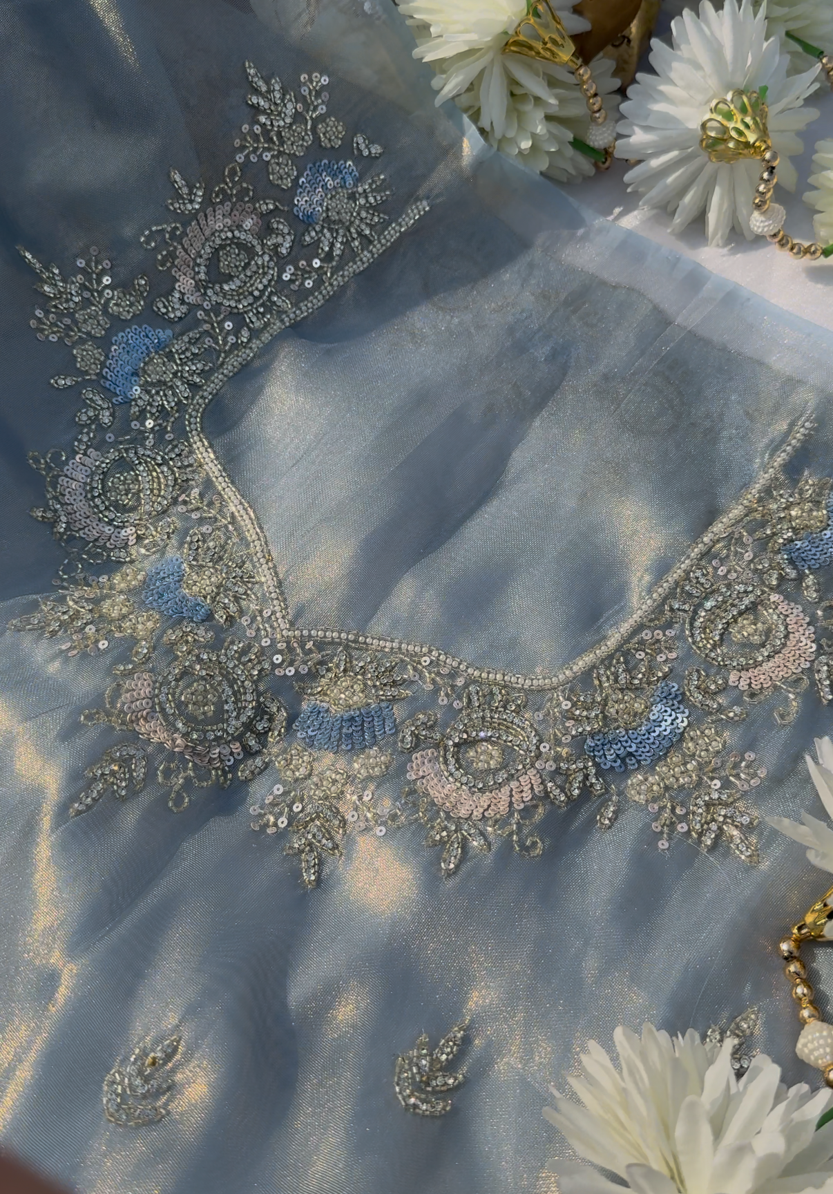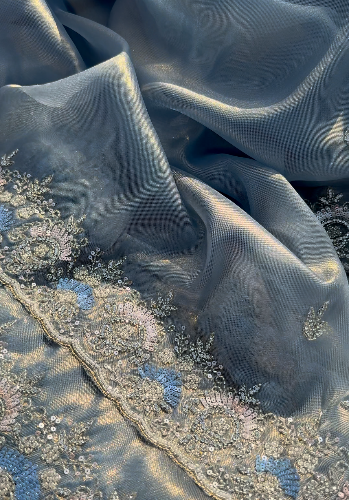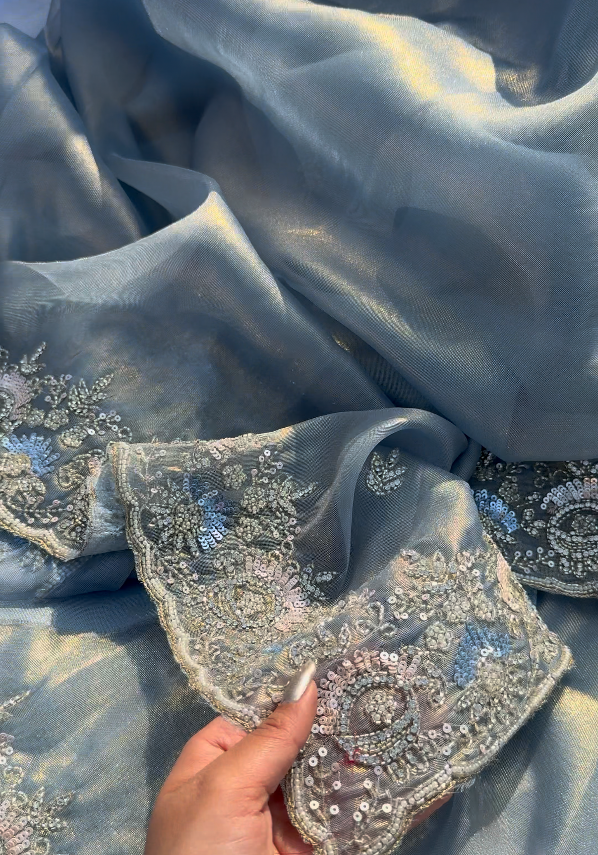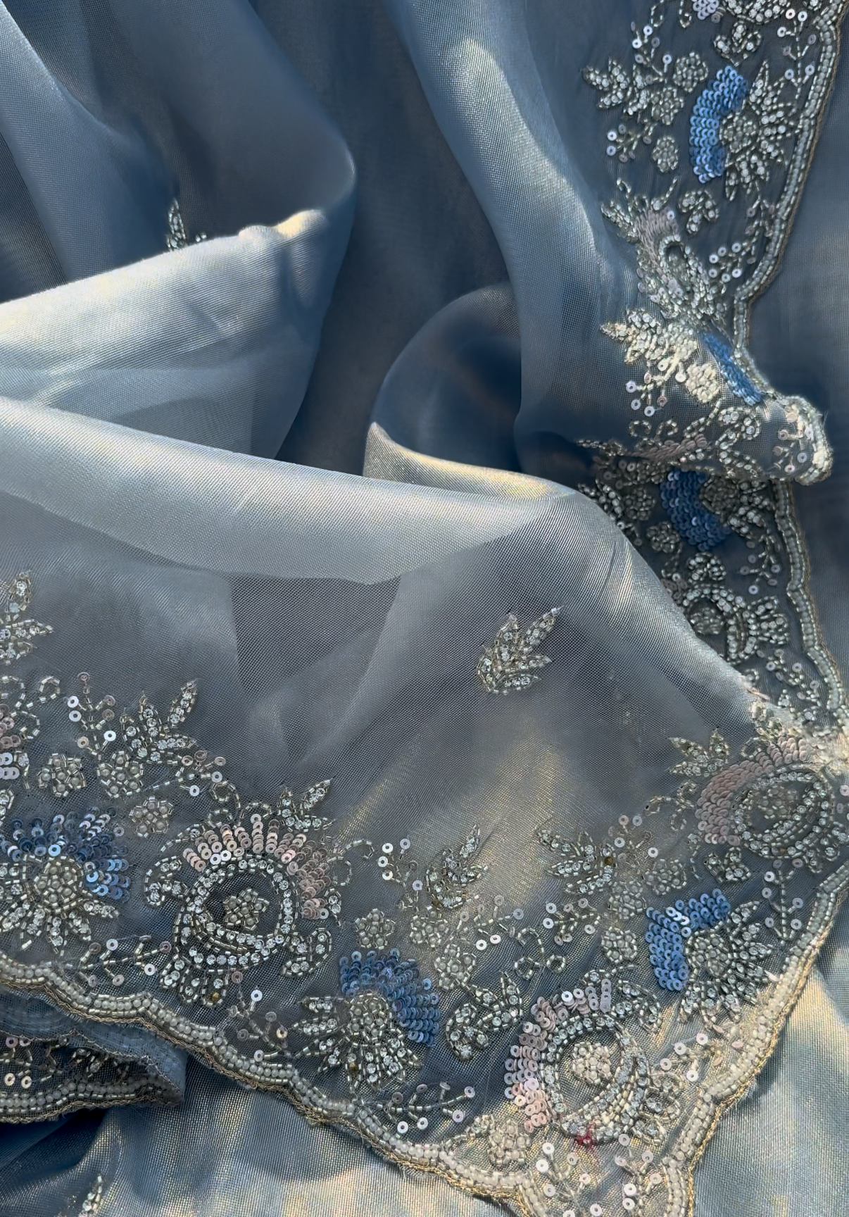 RIVER - Carolina blue shimmer tissue designer saree with sequins work