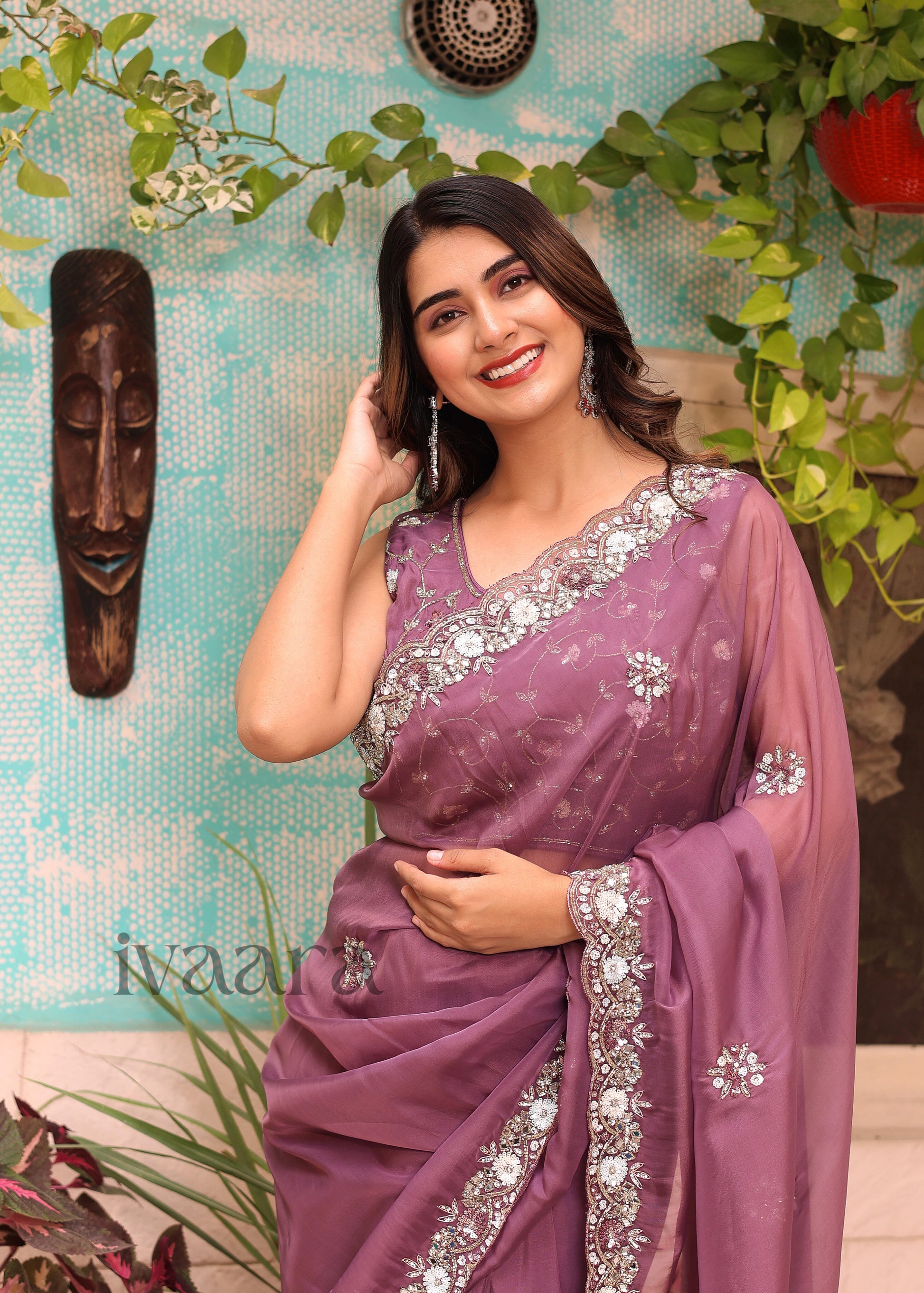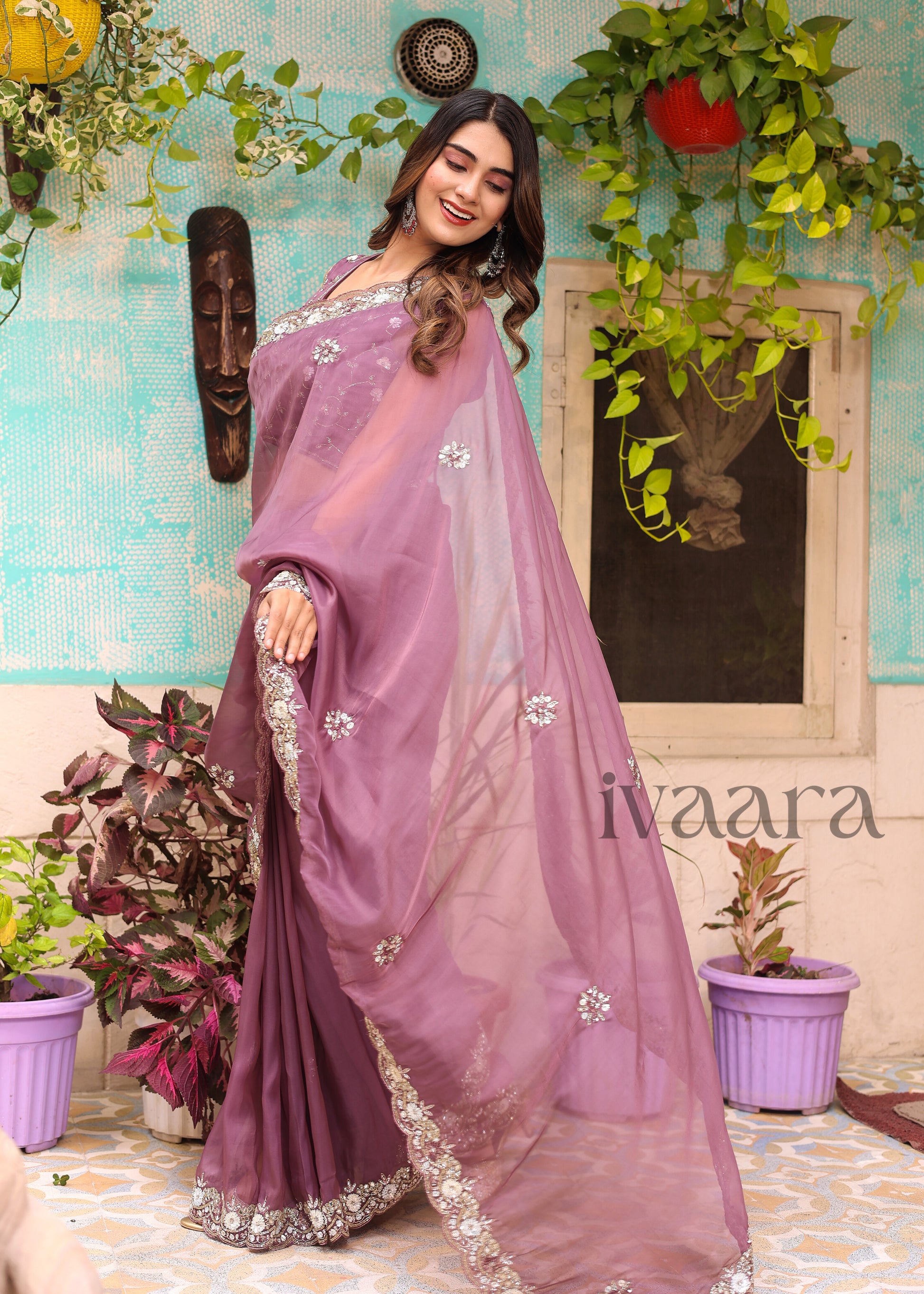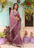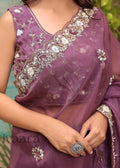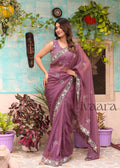 ZUBY - Raisin purple mirror work saree in organza